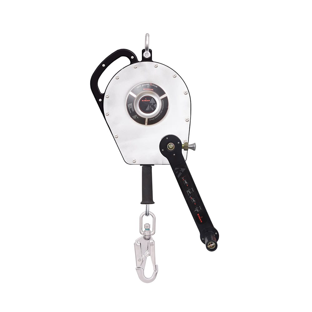 no modo guincho, elevando ou abaixando um usuário para segurança. Eles podem ser facilmente montados nos KARAM Extreme Davits e tripés.