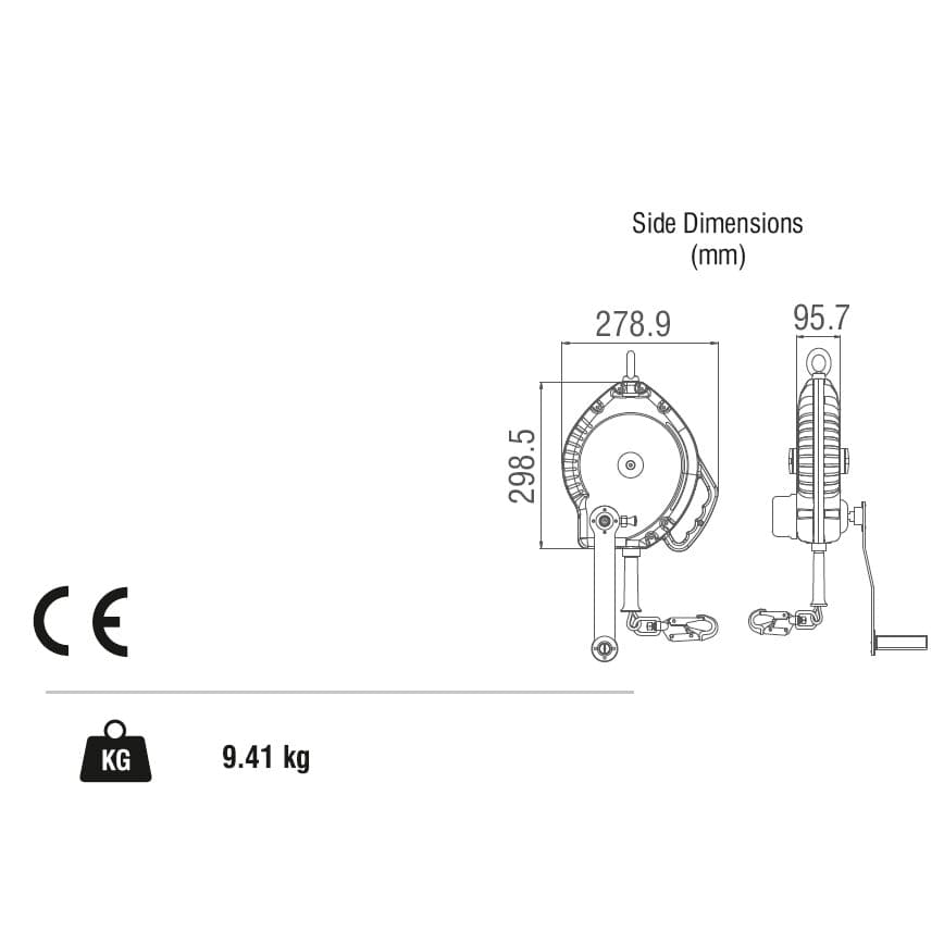 - O pino de travamento na lateral do invólucro na base da alça permite que este sistema duplo funcione em modos independentes de proteção contra quedas e guincho.