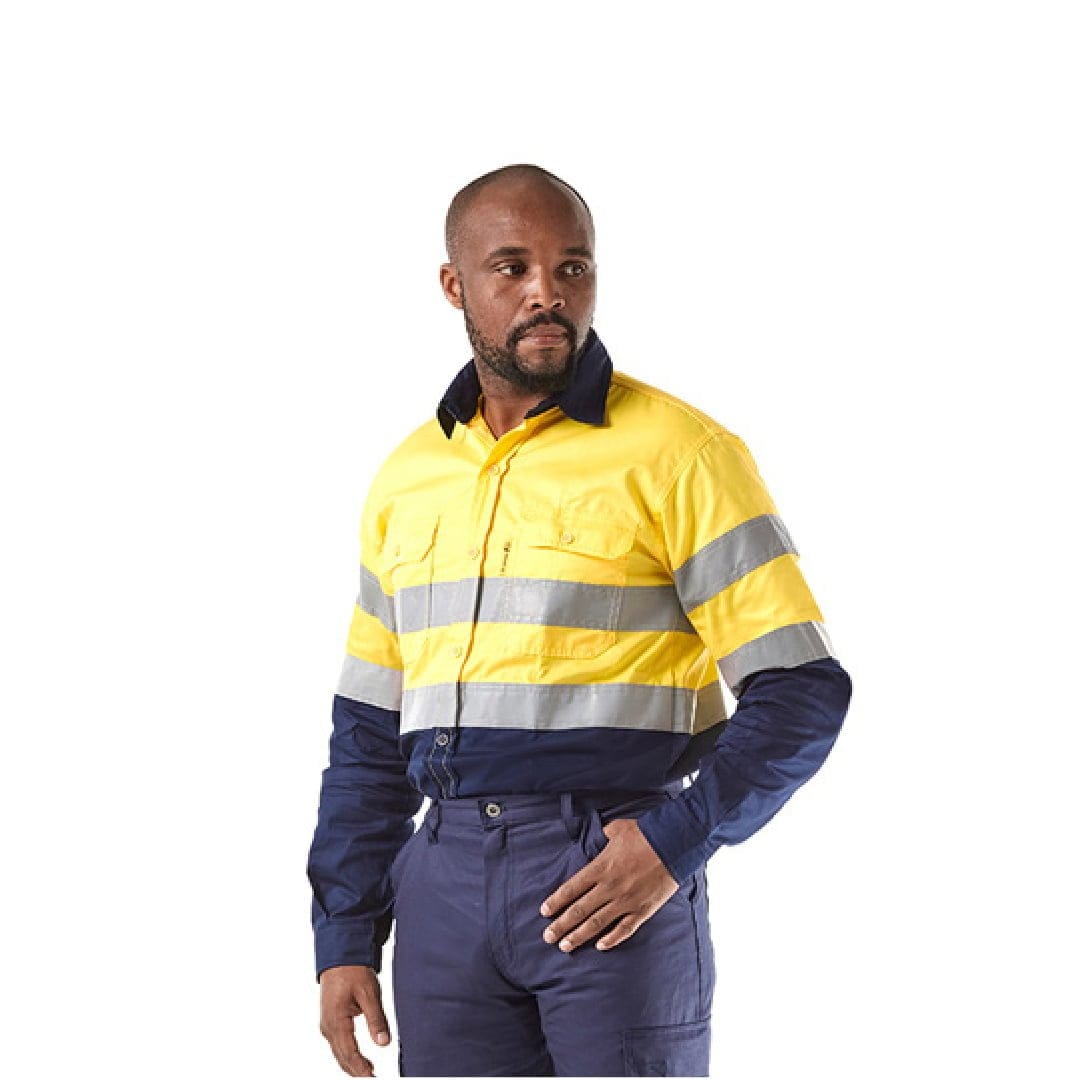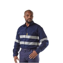 - Fita refletiva prateada de 50 mm nas mangas, ao redor do peito e da cintura