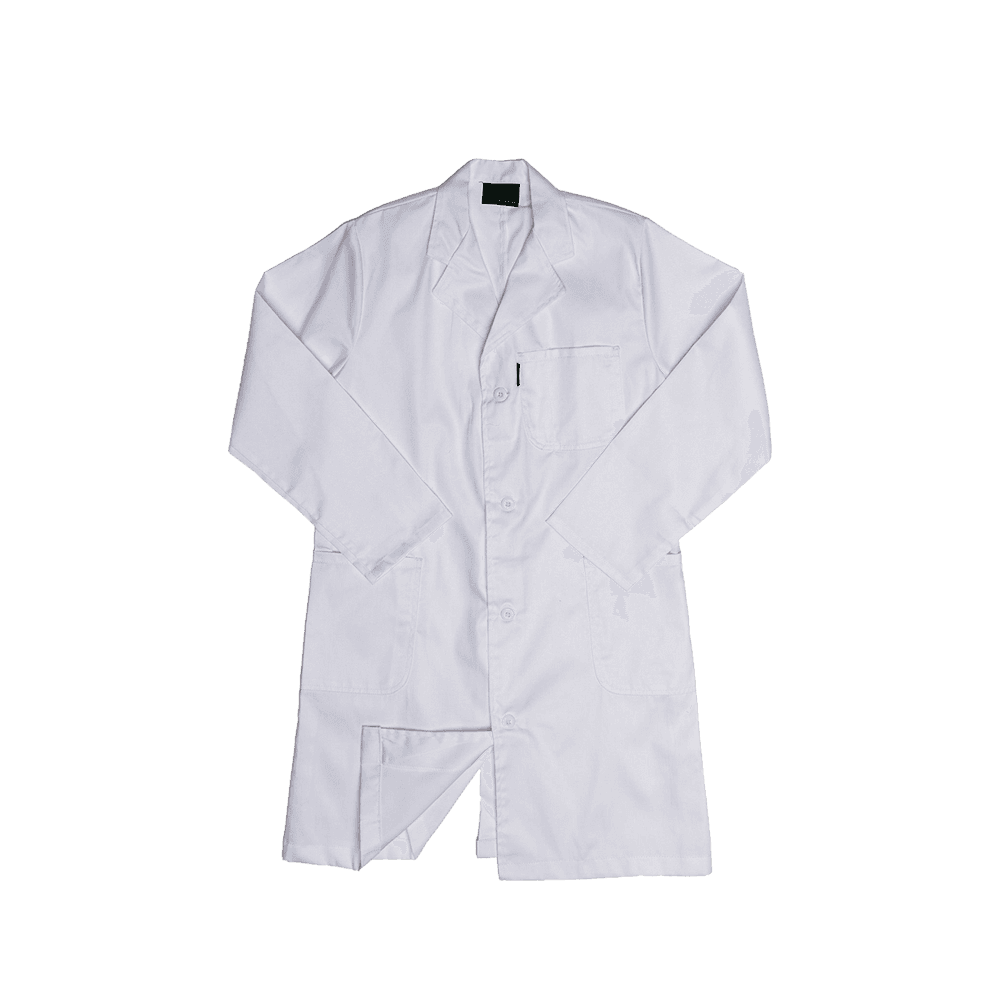 Este sobretudo de polialgodão foi projetado para ser prático e durável. Ele apresenta uma gola de lapela, um bolso esquerdo no peito com uma divisão para caneta e uma frente com botões. Os bolsos inferiores e a abertura traseira acrescentam funcionalidade, enquanto os pontos de tensão são fixados com barras para maior resistência. Os bolsos são fixados com costura dupla para maior durabilidade. Perfeito para uma variedade de ambientes de trabalho.