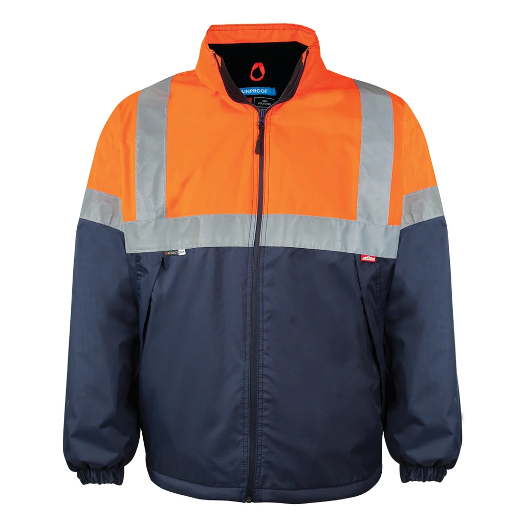 Uma jaqueta à prova de chuva de alta visibilidade, feita para aquecimento e proteção até mesmo contra as chuvas mais fortes.