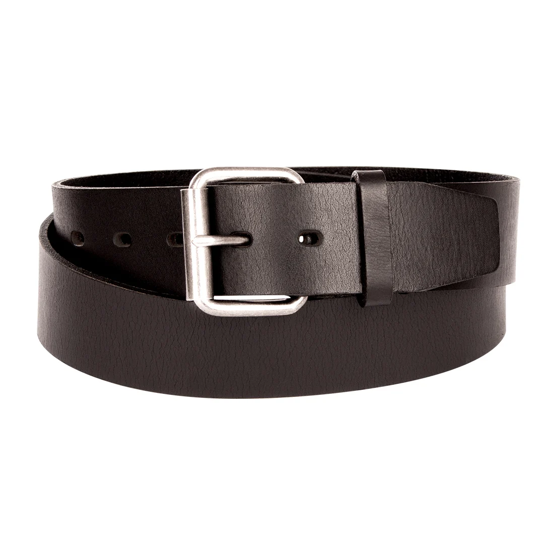 Este cinto de imagem é um acessório clássico e durável. Com 40 mm de largura, ele apresenta uma fivela de rolo de níquel antigo para um toque vintage. Feito de couro 100% de búfalo, este cinto preto é estiloso e resistente, perfeito para qualquer roupa.