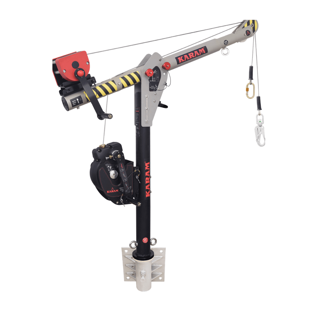braço Davit KARAM foi especialmente projetado para aplicações de entrada/resgate em espaços confinados. É ideal para fornecer ancoragem aérea portátil e segura em grandes áreas confinadas, como bueiros, tanques de armazenamento, etc. Também permite que o usuário ajuste a altura de acordo com as restrições de espaço livre.