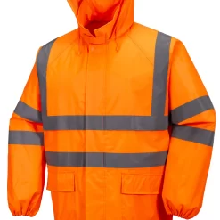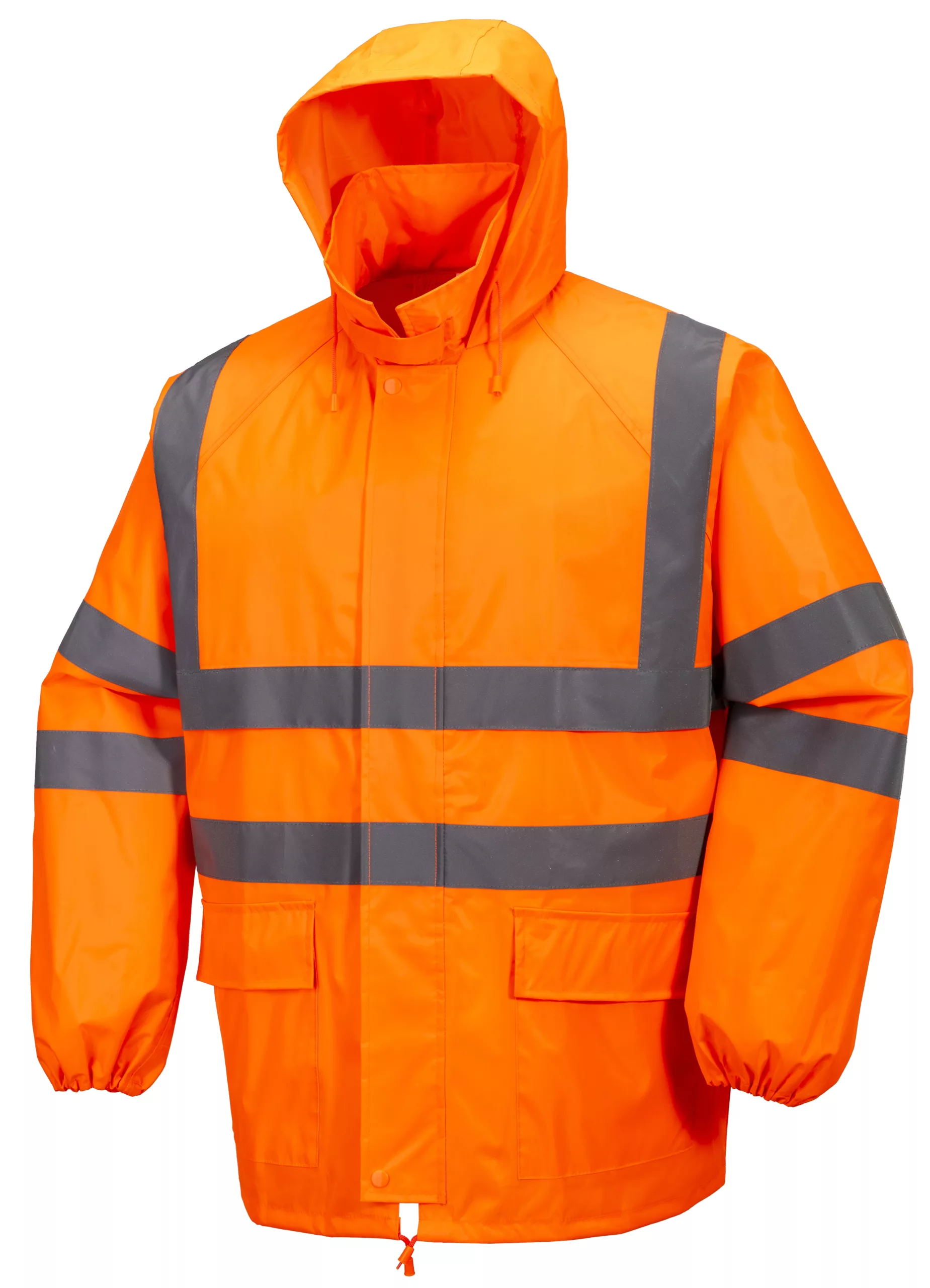 - Duas faixas refletivas de 50 mm ao redor do corpo, ombros e mangas