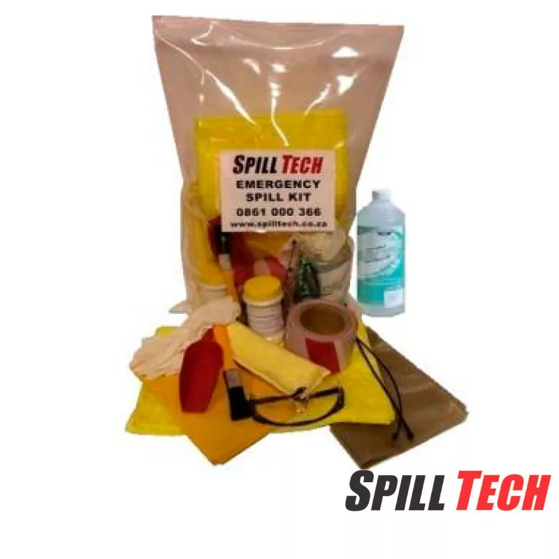 Limpe derramamentos com segurança! Este kit inclui tudo o que você precisa para pequenos derramamentos de materiais perigosos – desinfetante, compressas e meias absorventes, luvas, óculos de segurança e sacos de descarte. Peça o seu hoje e esteja preparado!
